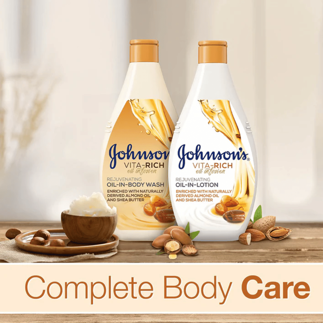 POWERFUL BLEND: enriched with a blend of naturally derived nut oils including almond oil, argan oil and shea butter, Johnson's Vita-Rich Replenishing Lotion delivers the power of these ingredients to deeply nourish and moisturize your skin.