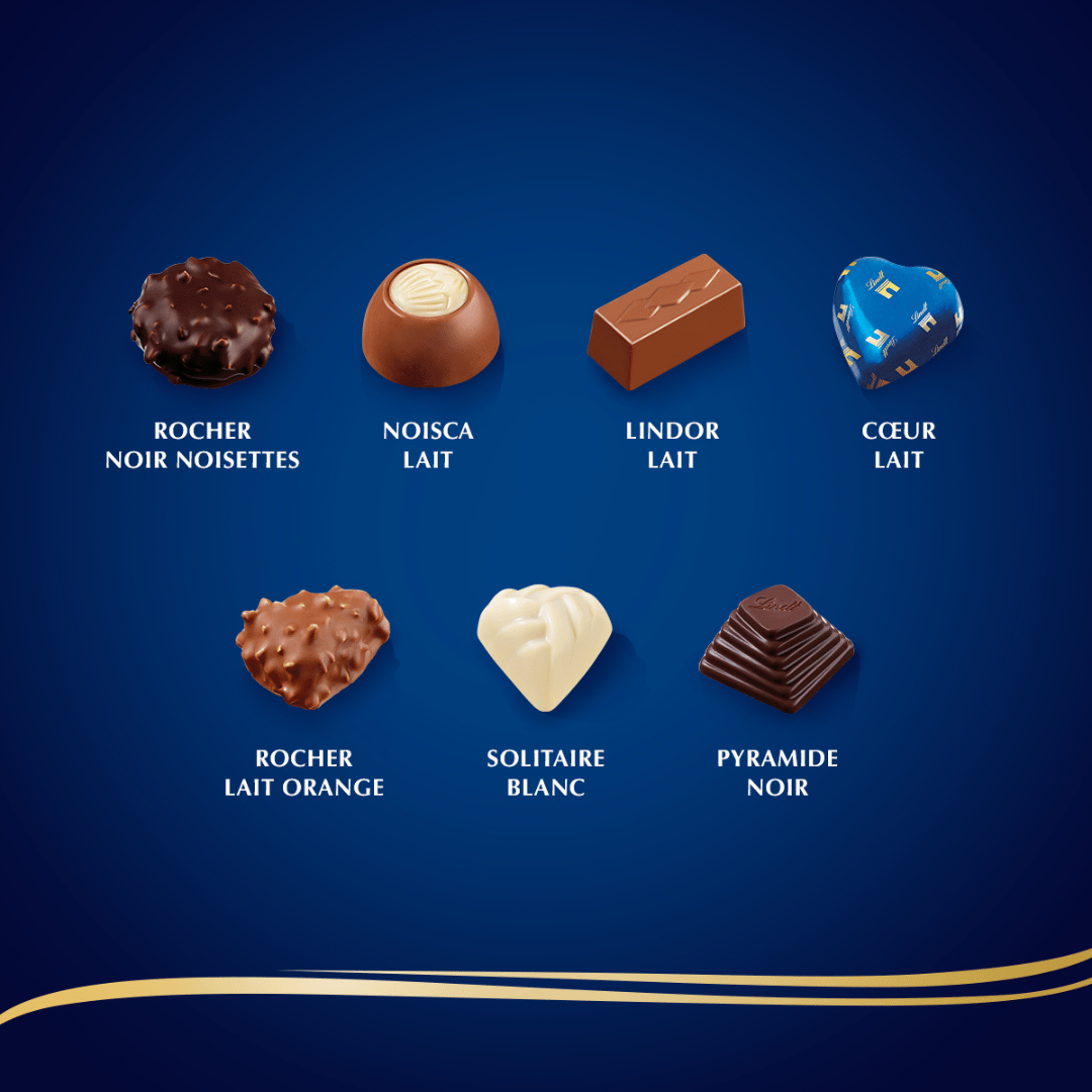 Plongez dans un univers de saveurs exquises et d'élégance, idéal pour les fêtes et les moments spéciaux à partager avec ses proches. Chaque bouchée de doux chocolat Lindt est une invitation à embarquer pour un voyage gustatif unique, reflétant l'excellence et le savoir-faire de Lindt.