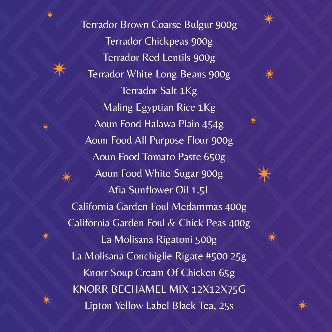 Filled with essential food basics and nourishing items, this box is designed to support families in need during the holy month. Whether you're contributing to a charitable cause or helping a community in need, your donation ensures that everyone can enjoy a fulfilling Iftar and Suhoor.